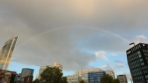 Arc-en-ciel sur le ciel de Londres, après une averse d’automne. Symbole éphémère d’espérance dans un temps politique verrouillé.